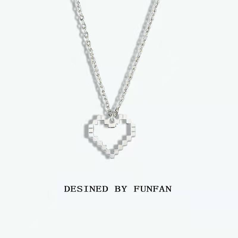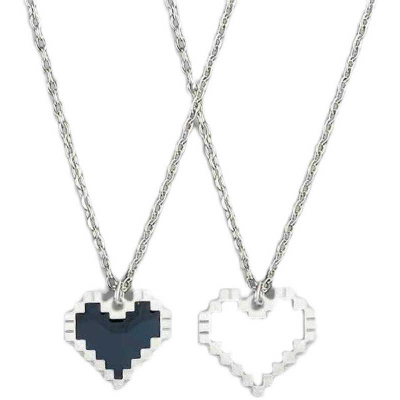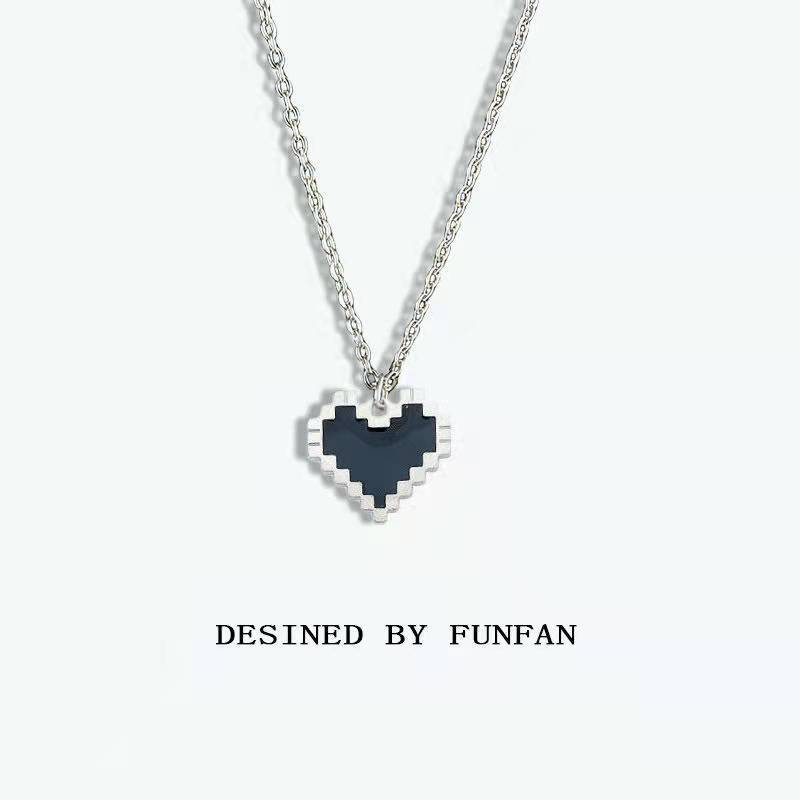 블랙 모자이크 사랑 중공 픽셀 복숭아 심장 차가운 바람에 가장 친한 친구 학생 목걸이 커플 체인 모든 매치 제인