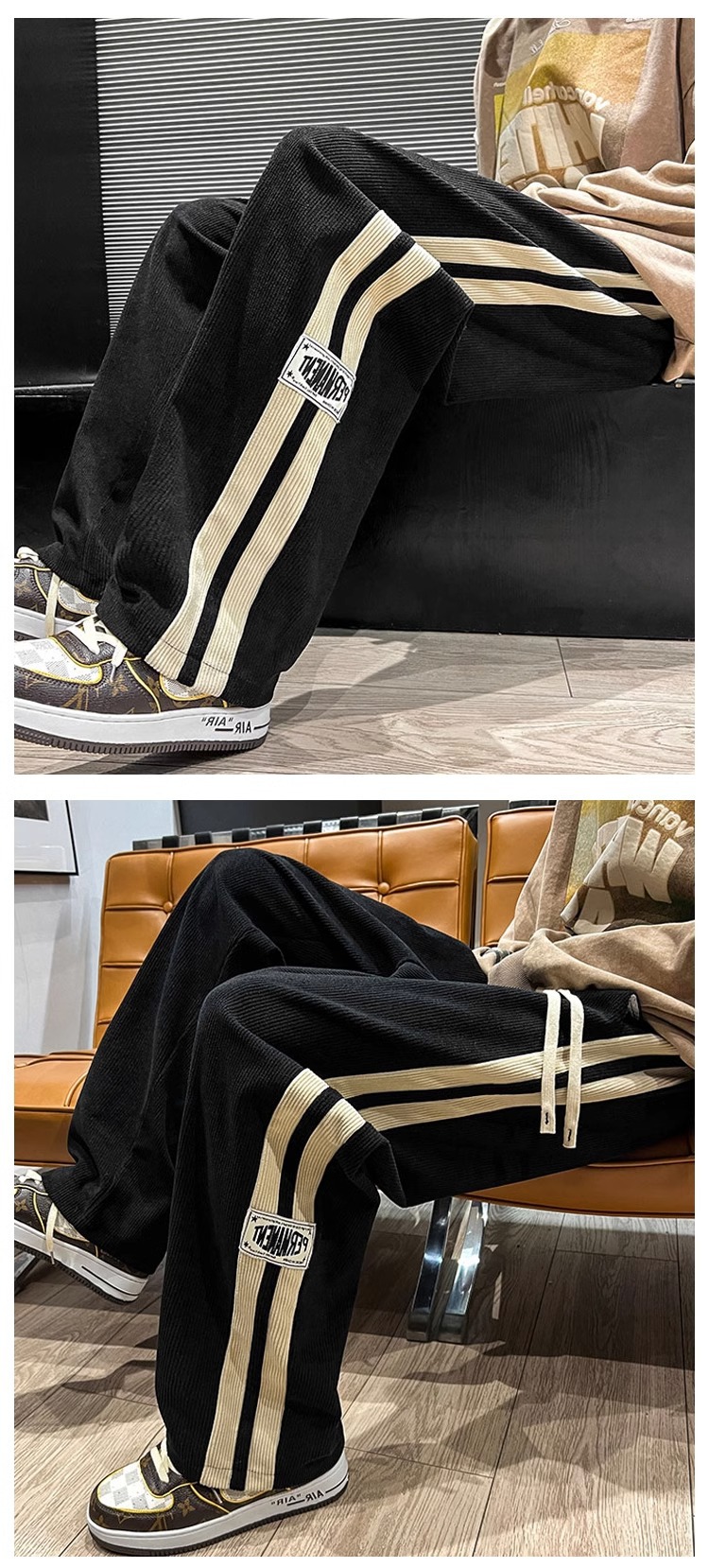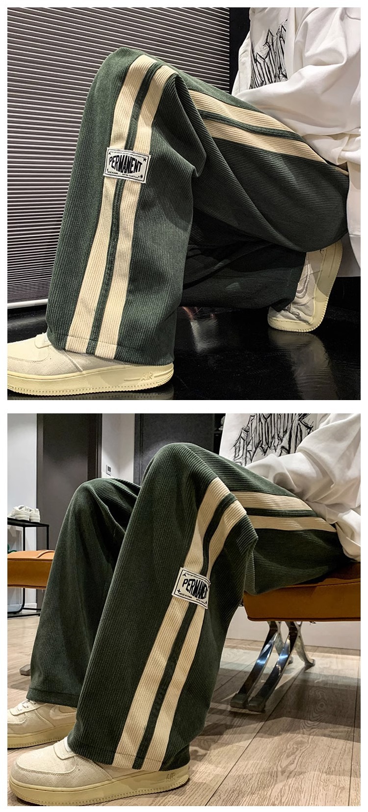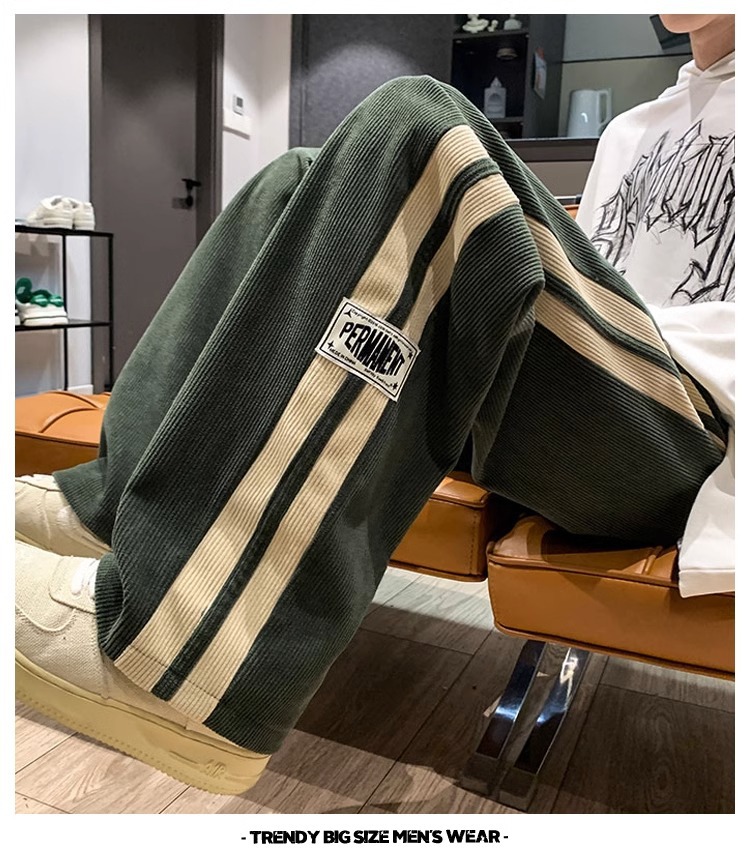 봄과 가을 코듀로이 바지 남성용 아메리칸 팬츠 느슨한 캐주얼 스트라이프 레터 스트레이트 커플 와이드 레그 팬츠 트렌디 신상품