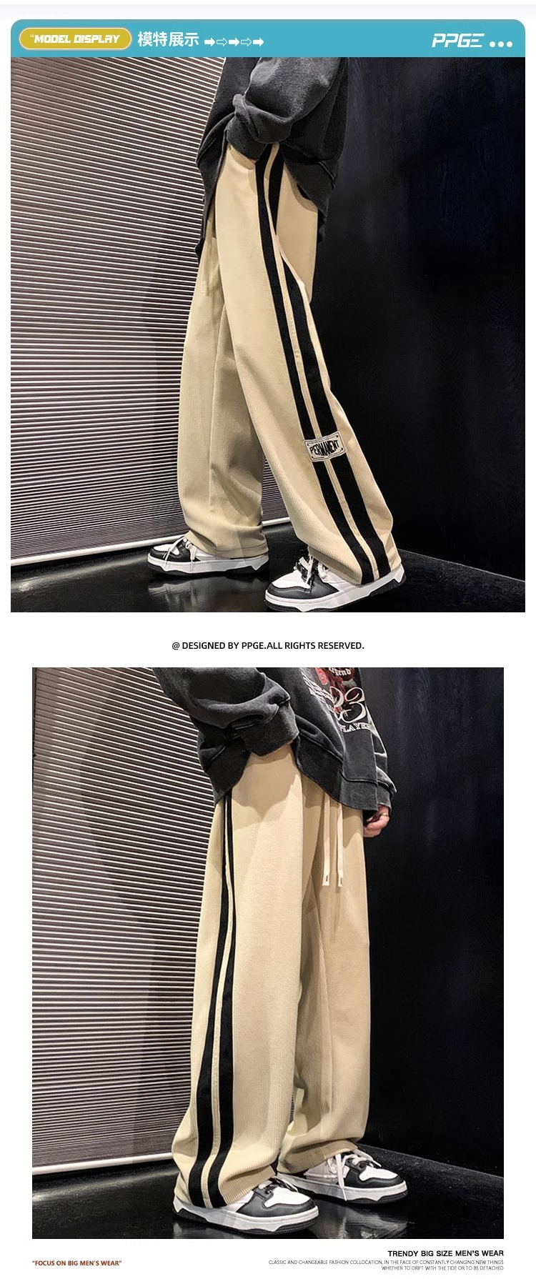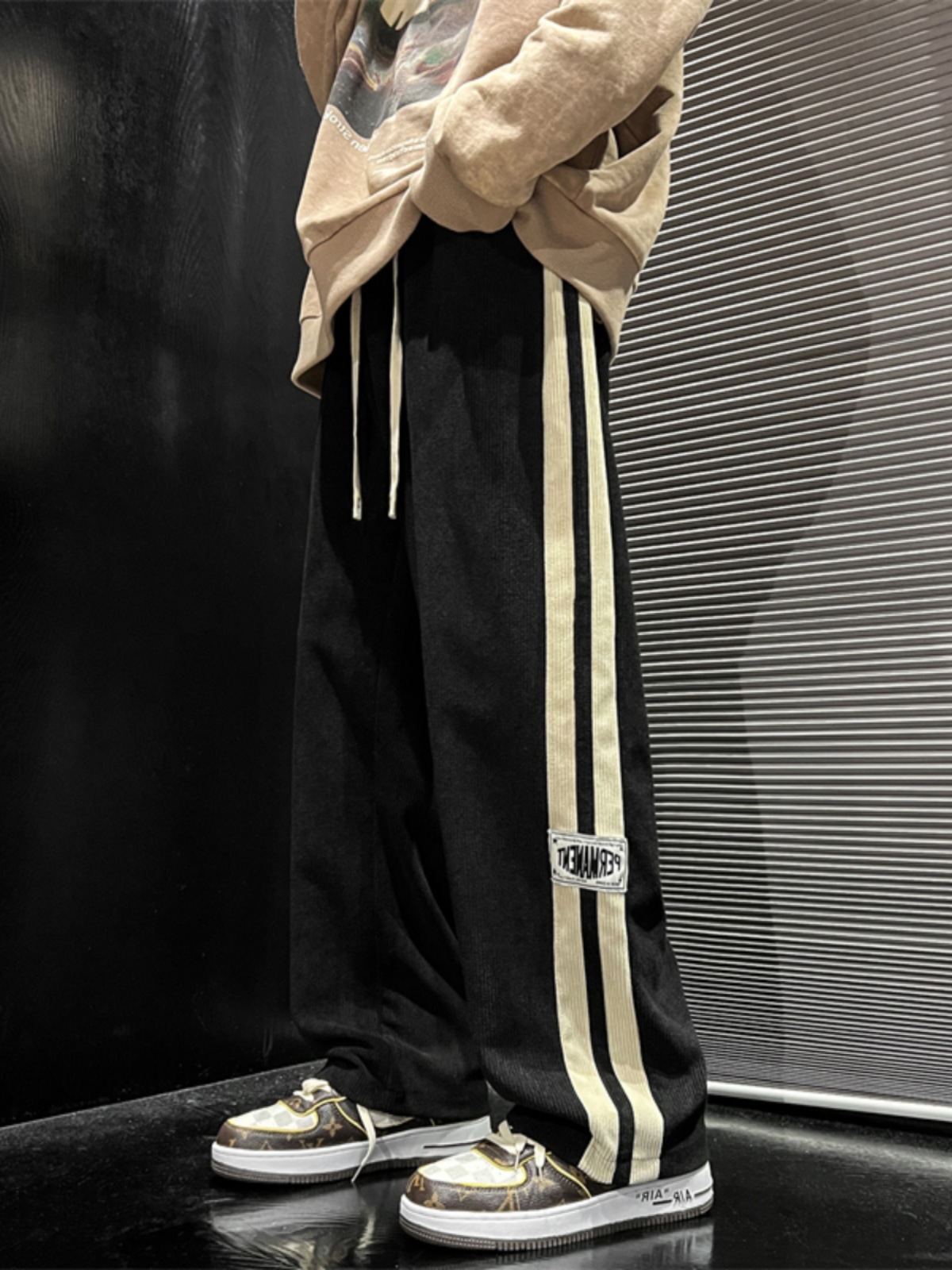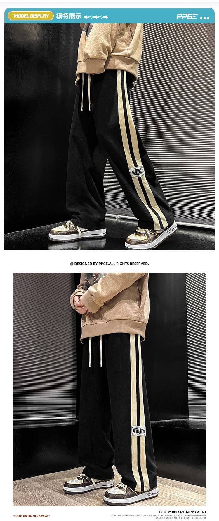 봄과 가을 코듀로이 바지 남성용 아메리칸 팬츠 느슨한 캐주얼 스트라이프 레터 스트레이트 커플 와이드 레그 팬츠 트렌디 신상품