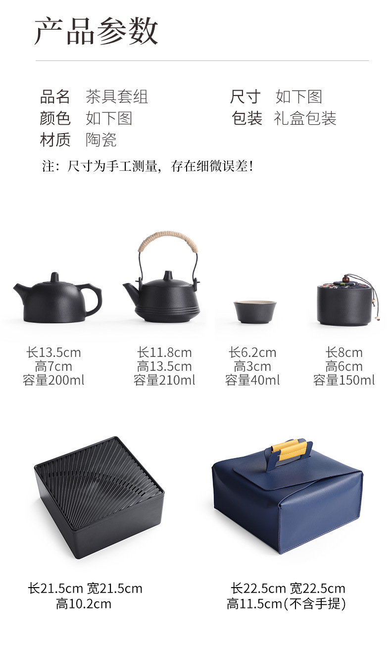 징란 냄비 여행 차 세트 세트 (블랙)