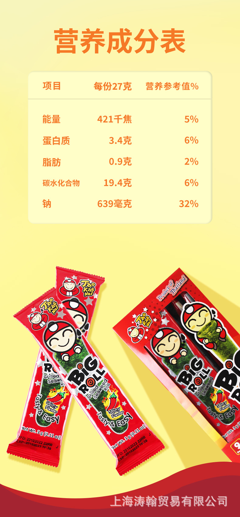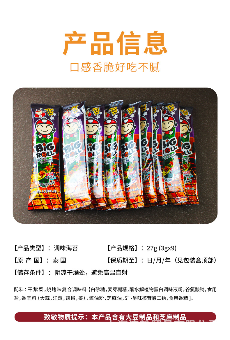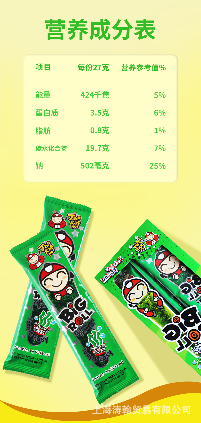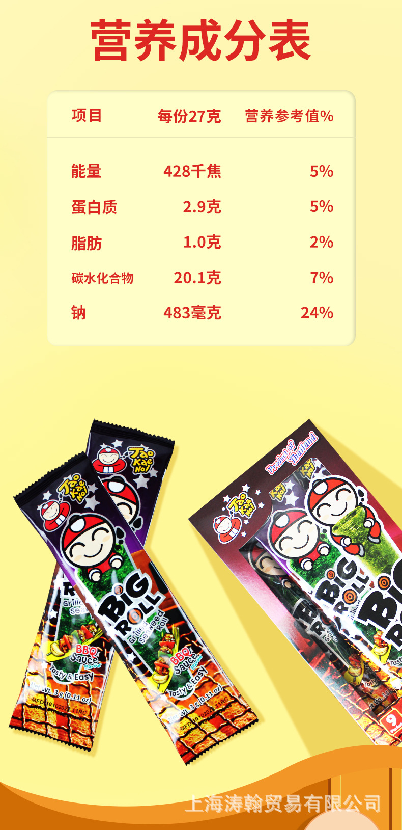 태국 수입 보스 해초 클래식 바삭한 해초 롤 TaoKaeNoi 어린이 스낵 27g * 1 상자