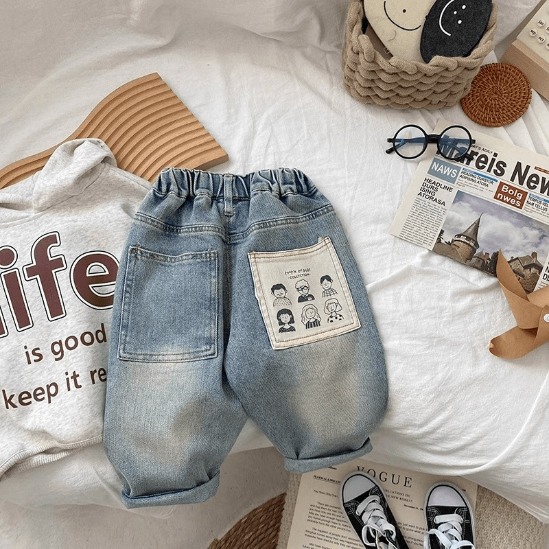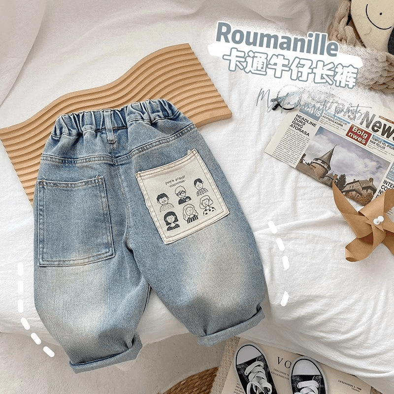 아기 2024 새로운 청바지 봄과 가을 한국 스타일 어린이 서양식 봄 긴 바지 소년 캐주얼 거리 바지