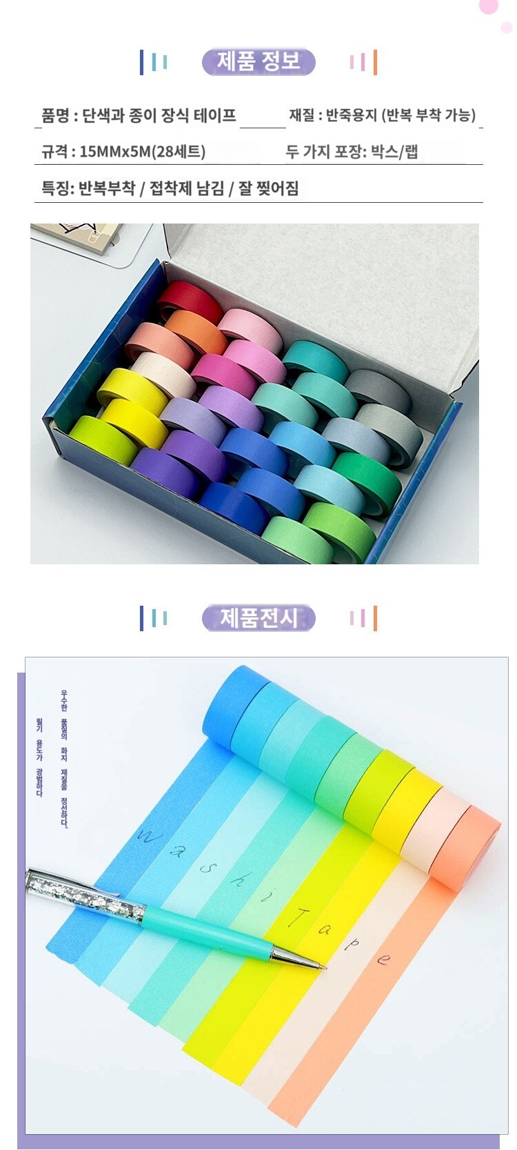 아마존 베스핸드북 테이프 트셀러 28색 일본 종이 테이프 장식 레인보우 컬러 블로킹 스프레이 페인트 멀티 컬러 쓰기 가능