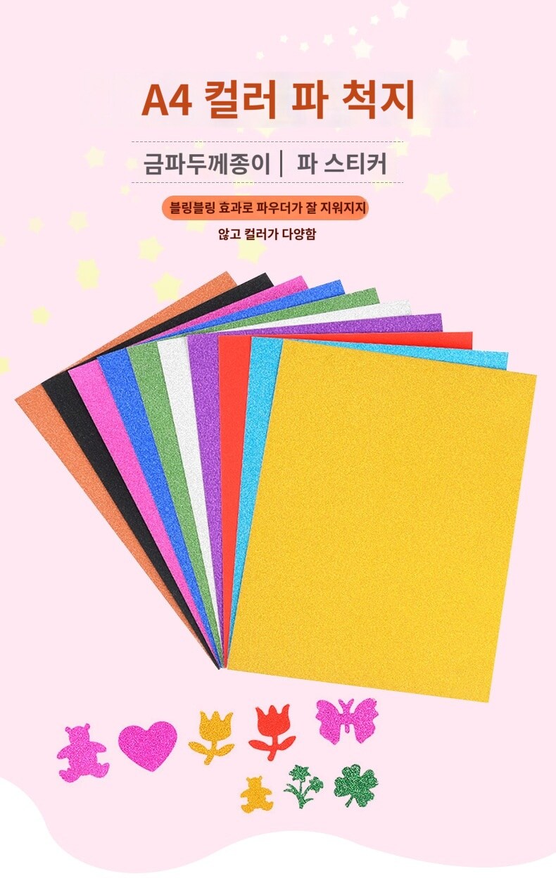 A4 컬러 종이 글리터 어린이용 종이 커팅 글리터 카드지 스티커 유치원 수제 DIY 컬러 엠보싱