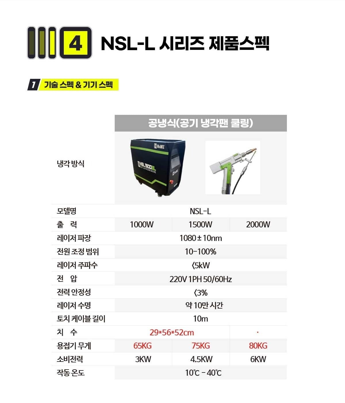 내쇼날시스템 휴대용 컴팩트 공냉식 레이저용접기 NSL-1500WL 1500W