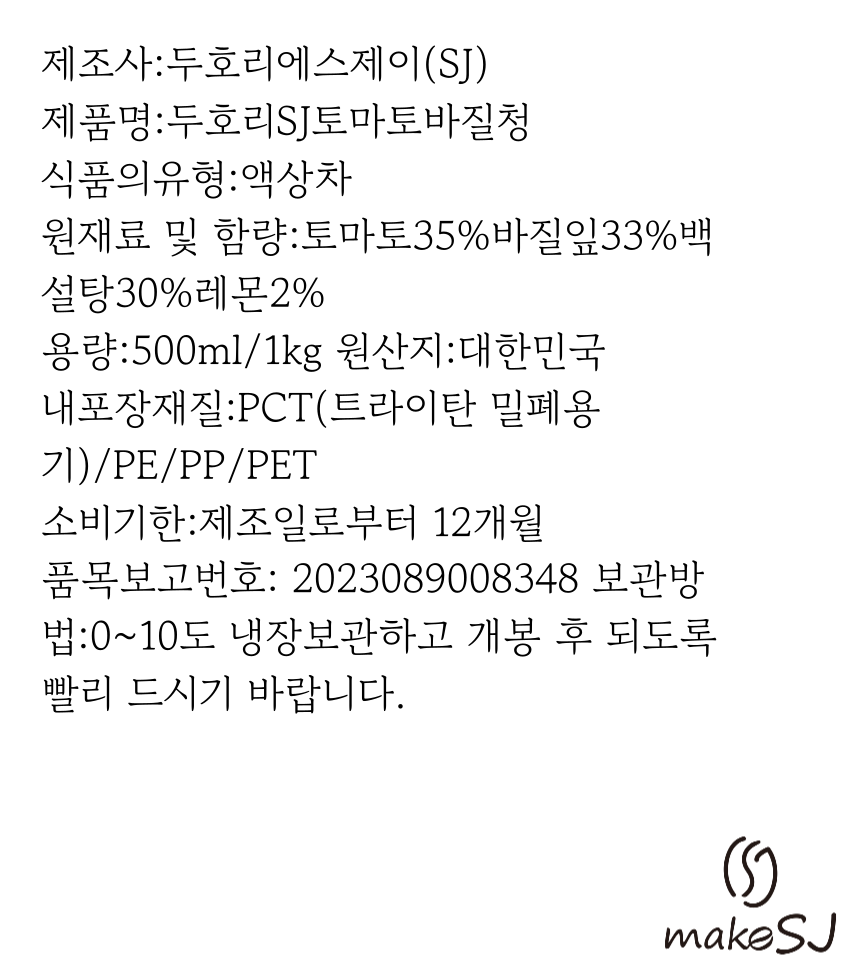 방울 토마토 & 바질청 500ml / 1000g [원산지:국산(경상남도 고성군)]