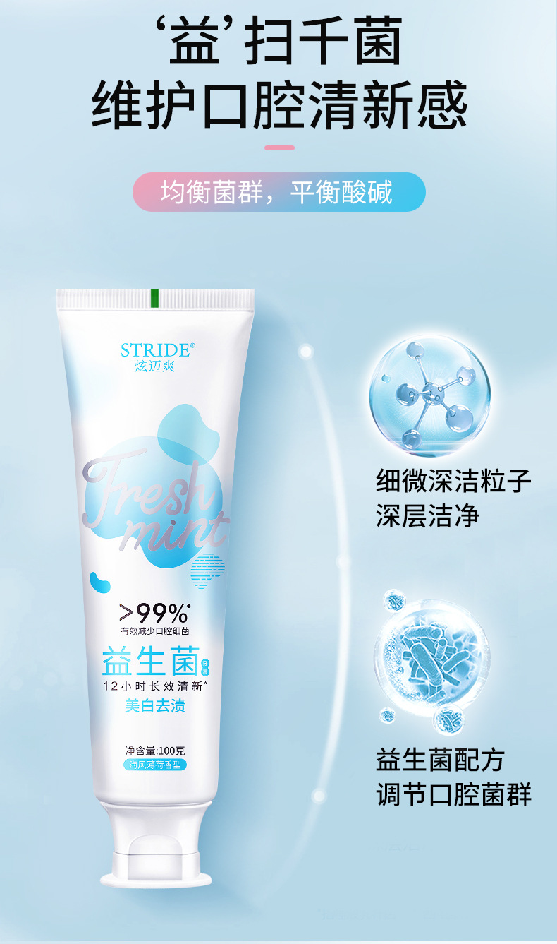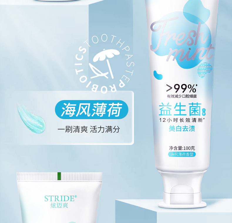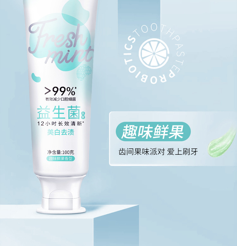 검은 색과 노란색 치아 얼룩을 개선하기 위해 동일한 프로 바이오 틱 밝은 흰색 치약 신선한 호흡의 소리를 흔들어 가족 팩 남성과 여성 100g