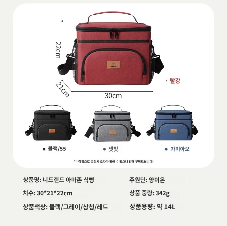 피크닉백 PEVA 방수 단열백 대용량 단열 도시락 가방 휴대용 도시락 가방