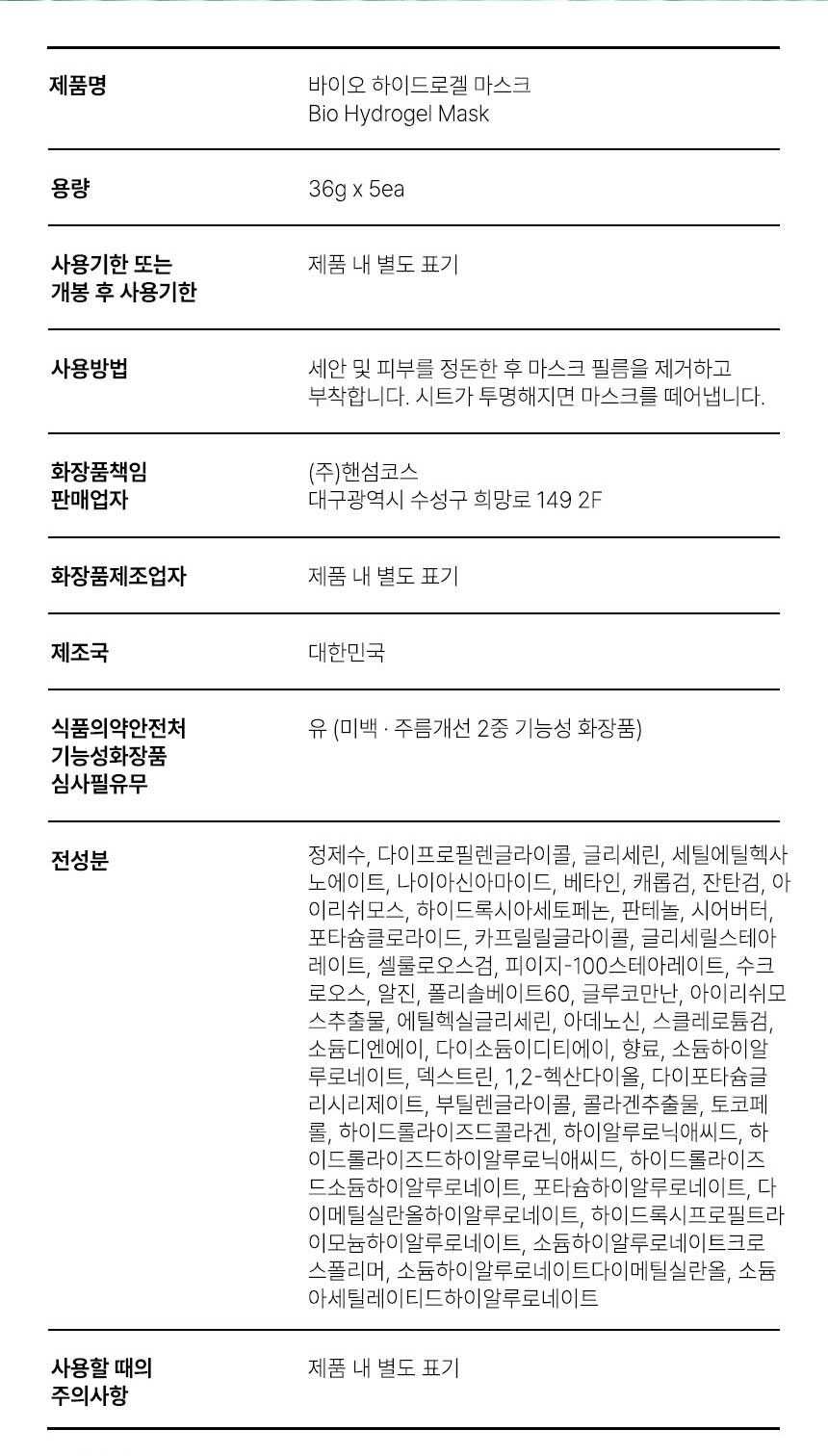 델라본 바이오 하이드로겔 마스크 1Box / 5ea