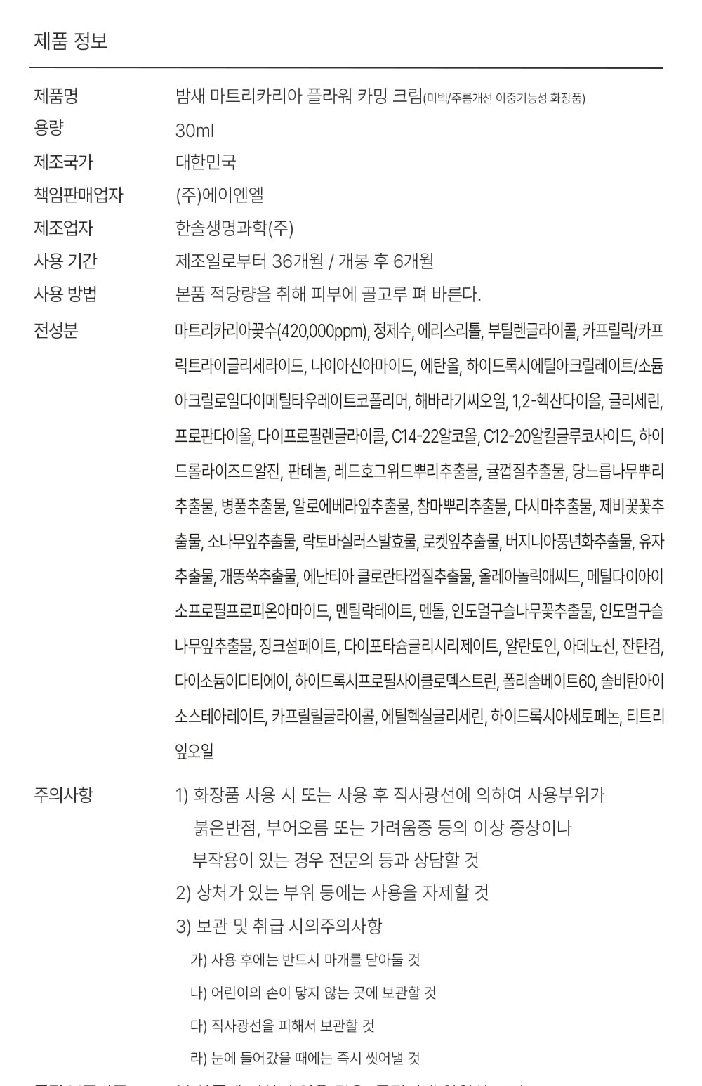 밤새 BAMSAE 마트리카리아 플라워 카밍 크림