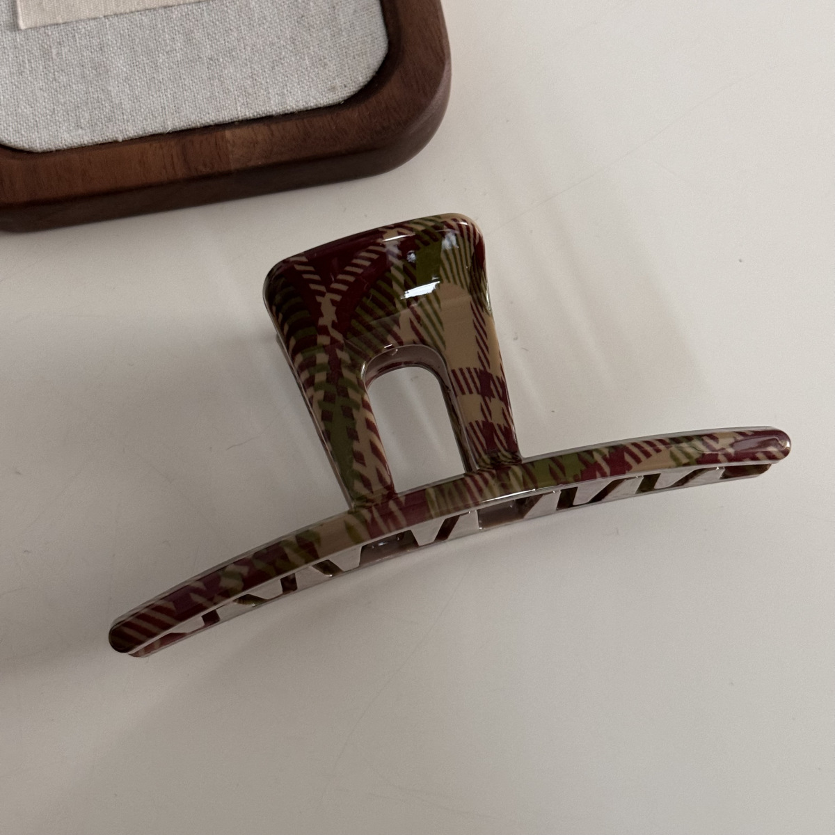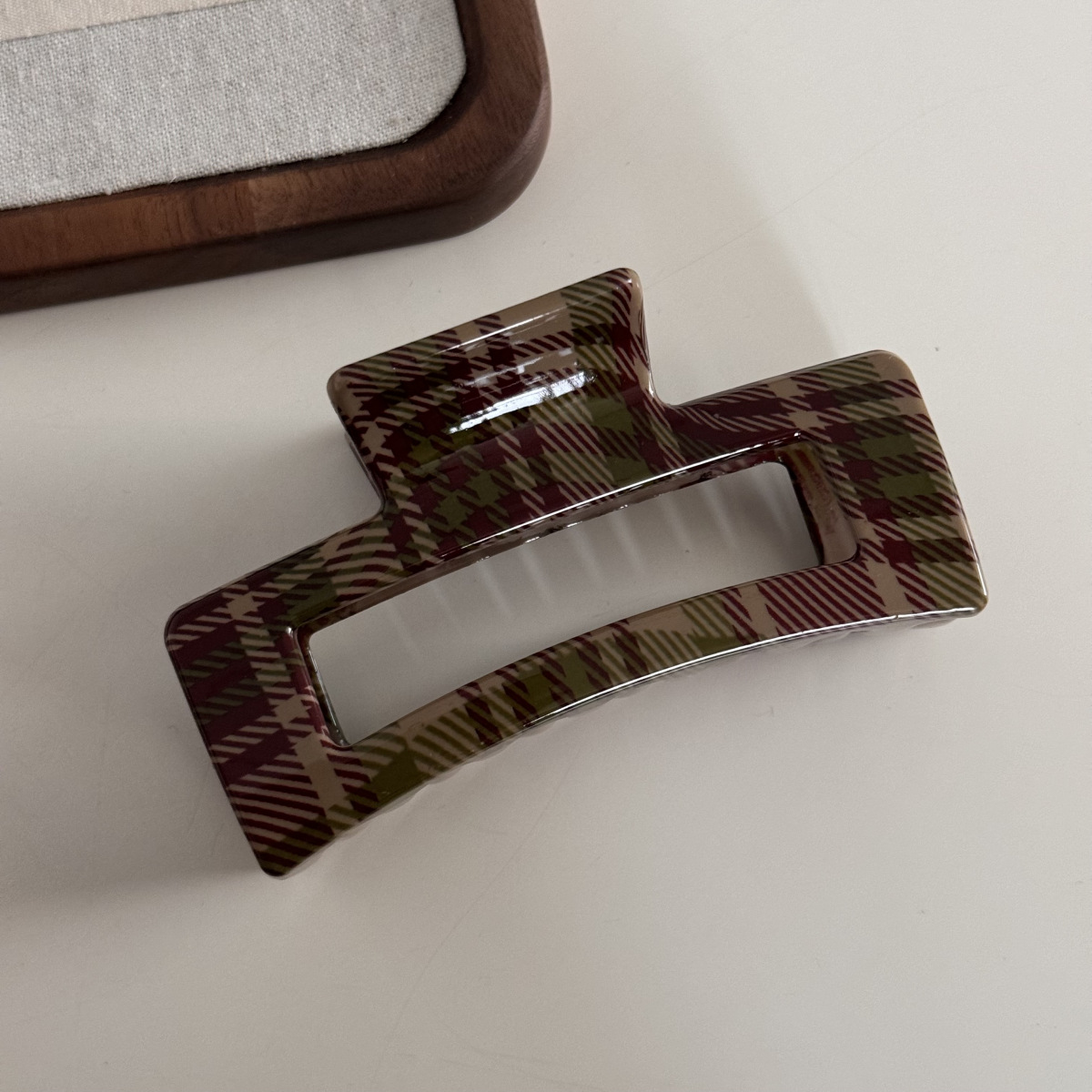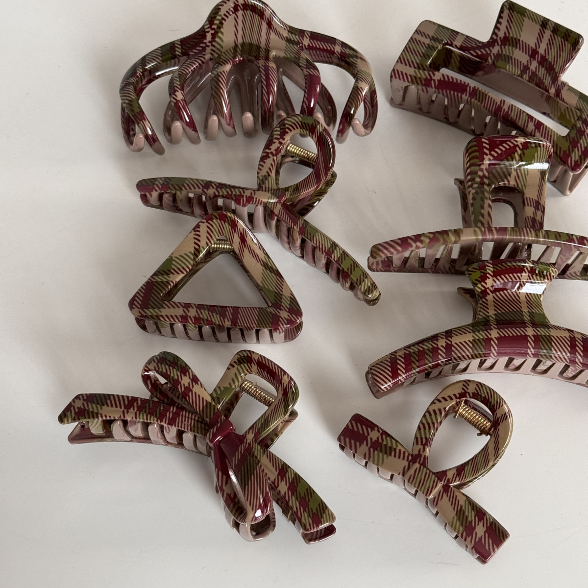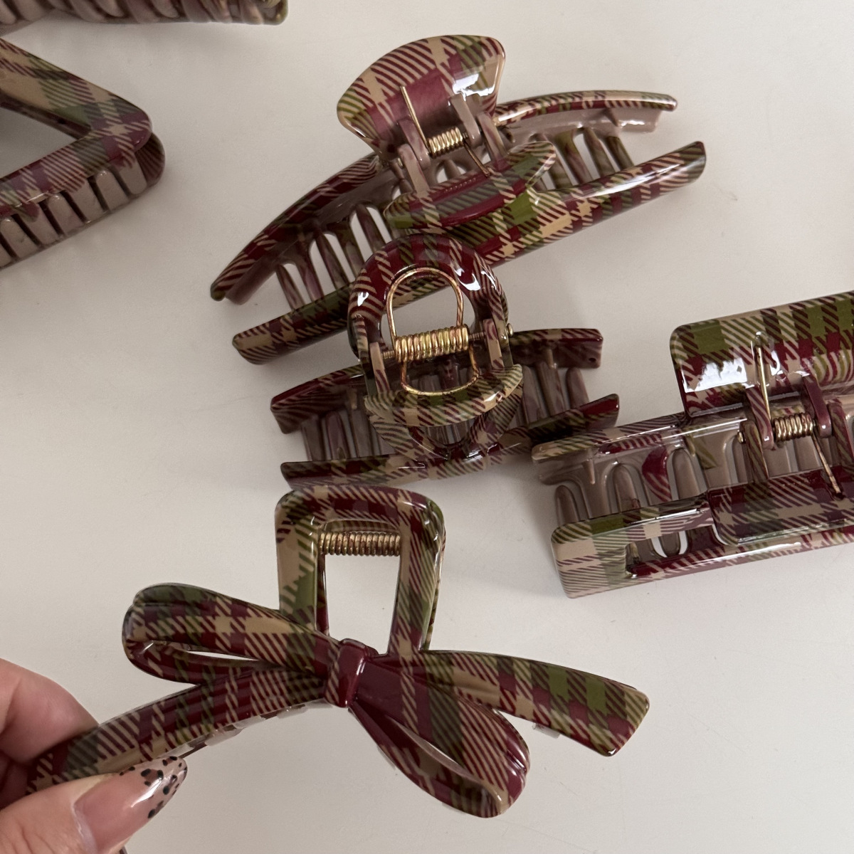 밝은 색상의 빨간색과 녹색 크리스마스 스타일 패턴 헤어 클립, 고급 헤어 클립, 우아한 새로운 스타일의 머리 장식, 상어 클립.