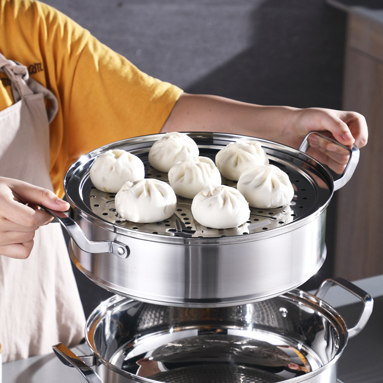 Chaozhou 제조업체 유리 스테인레스 스틸 304 스팀 그리드는 다층 수프 냄비에 찐 생선 찜 레이어 찐 빵을 사용할 수 있습니다