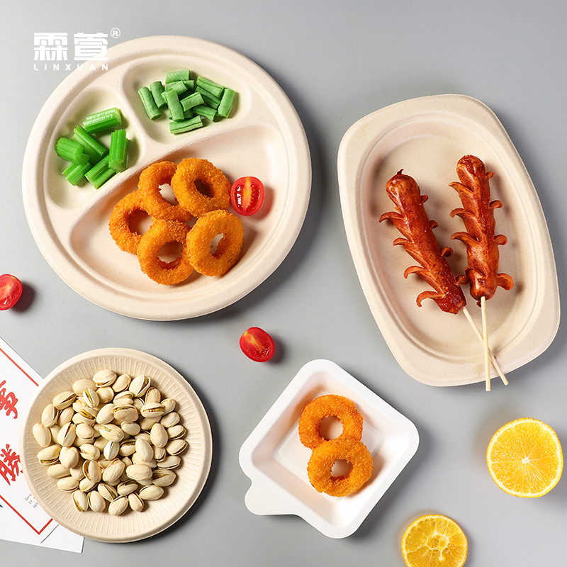 가벼운 럭셔리 스퀘어 일회용 펄프 플레이트 접시 담그기 소재 바베큐 가정용 상업용 식품 등급 트레이 도매