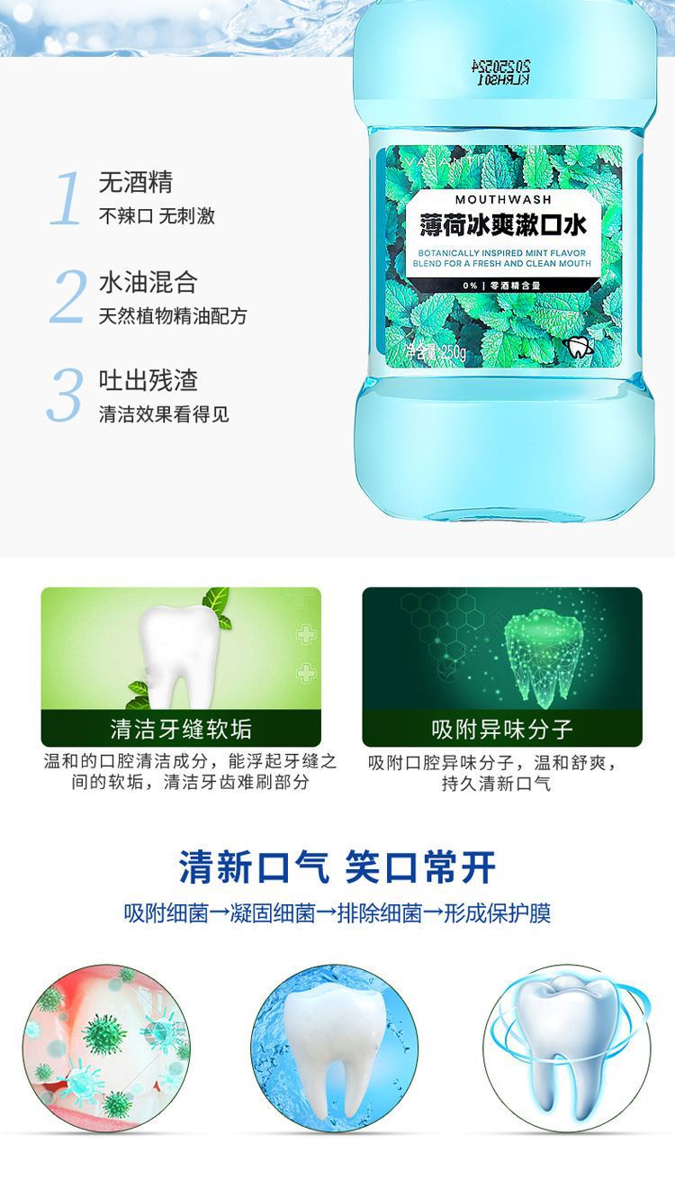 250ML 과일 맛 마우스 워시 신선한 호흡 나쁜 호흡 치아 얼룩 호흡 냄새 민트 커플 학생 좋은