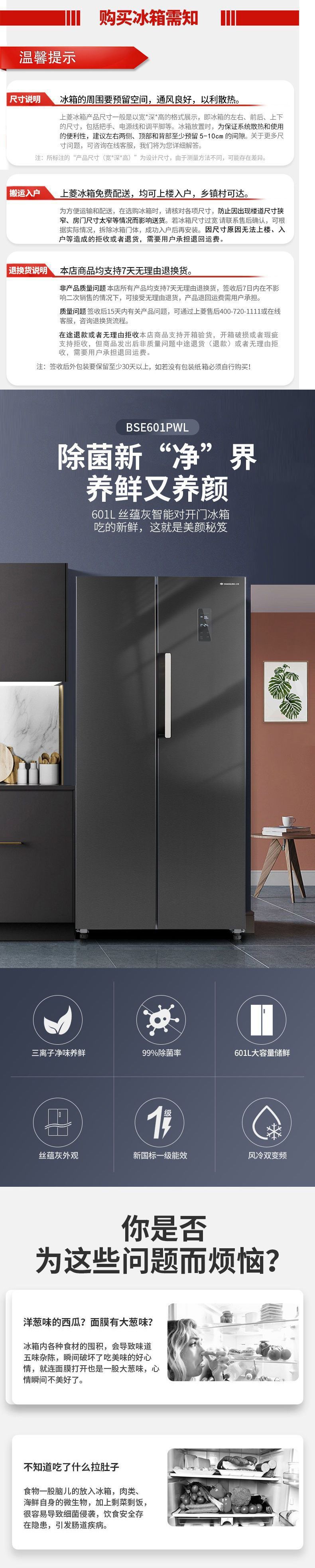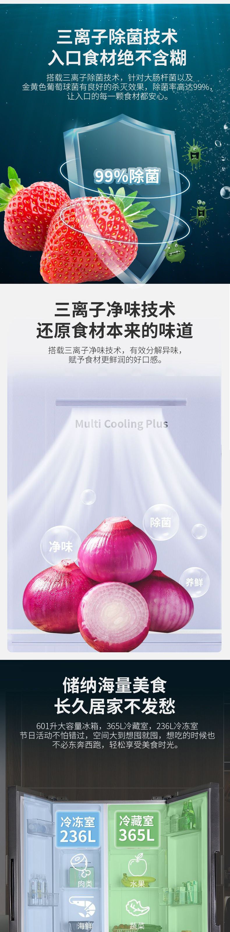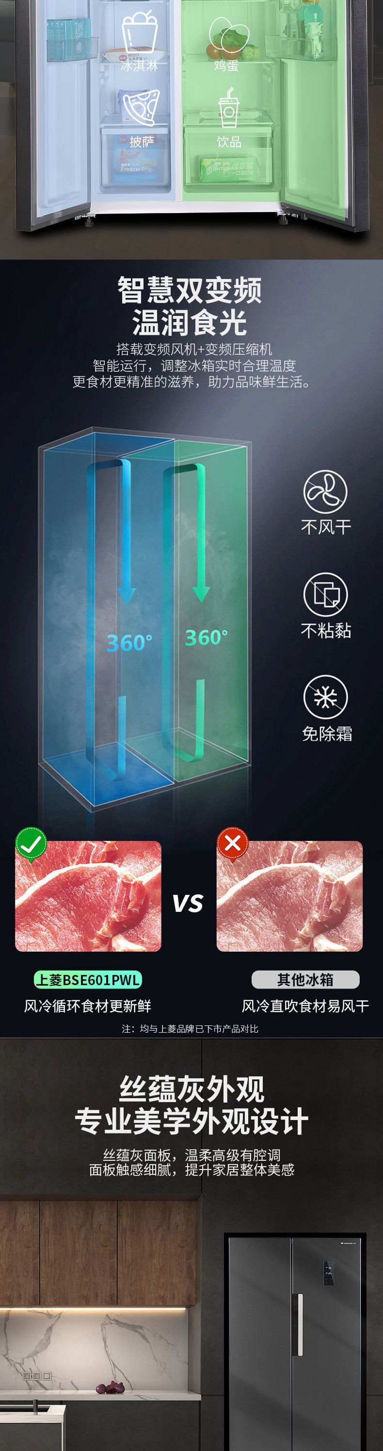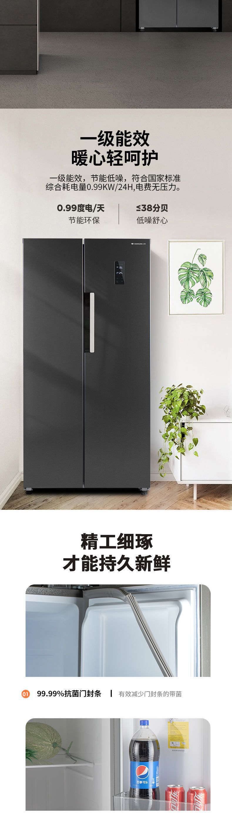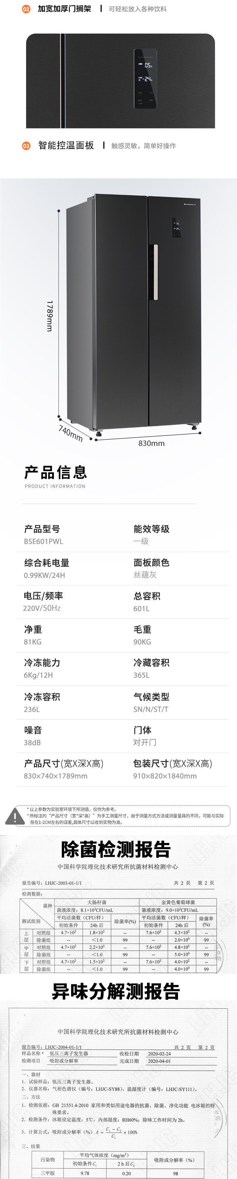601升对开门一级双变频【净味除菌】
