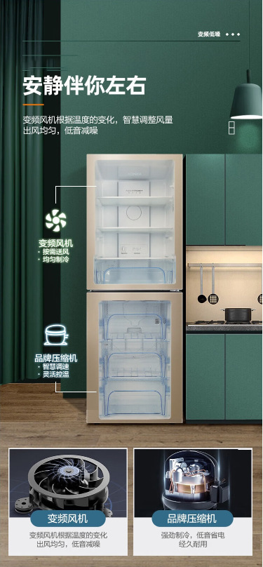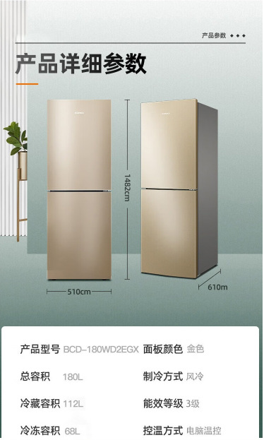 KONKA 180 리터 2 도어 공냉식 냉장고 2 도어 홈 냉장고 BCD-180WD2EGX 골드