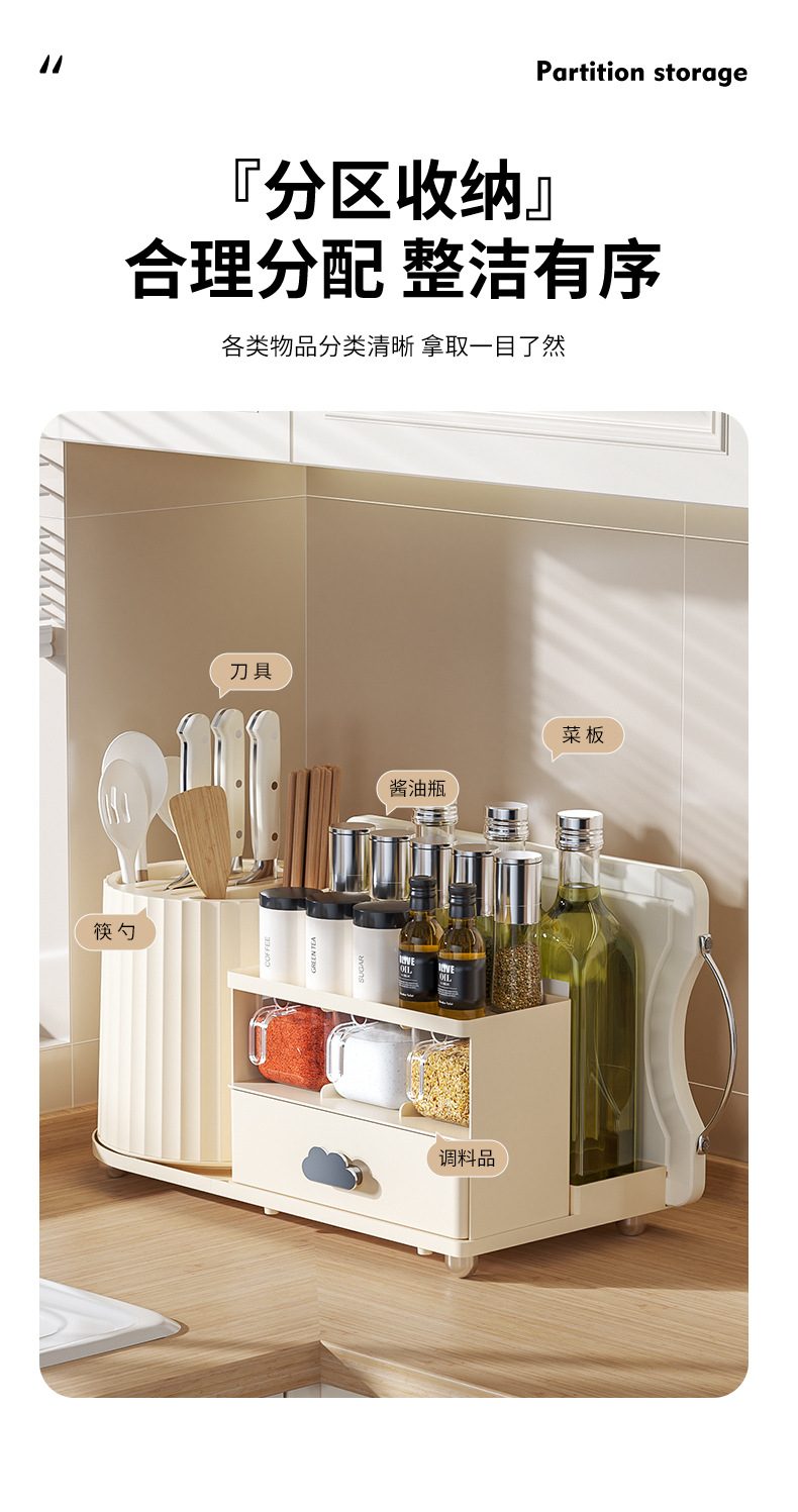 칼 홀더 조미료 저장 랙 조합 크림 화이트