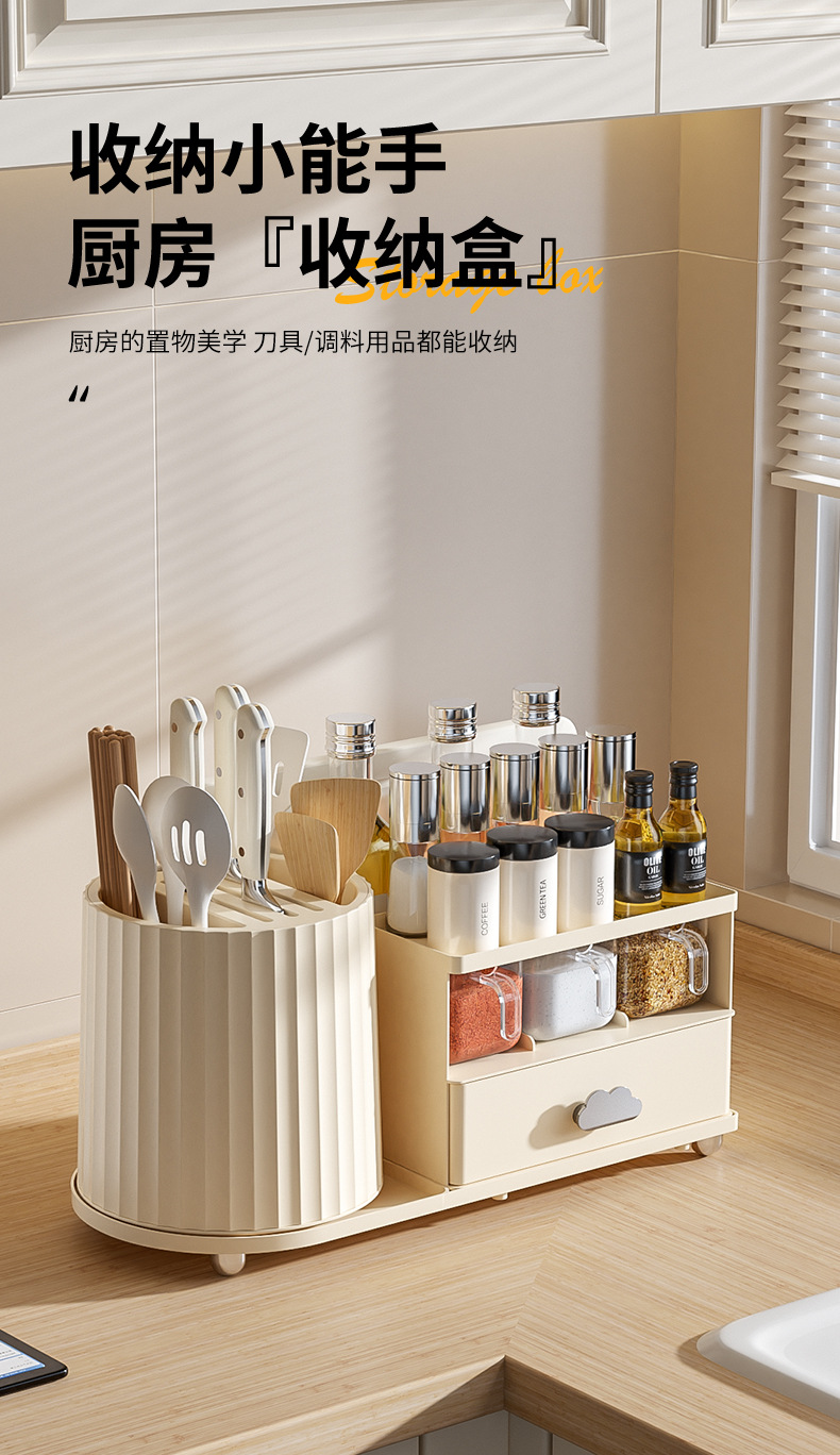 주방 다기능 회전 칼 저장 랙 젓가락 홀더 분할 향긋한 향신료 저장 상자 오일 흄 식초 보관