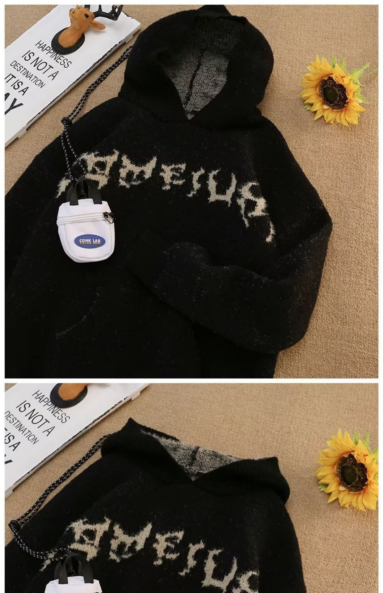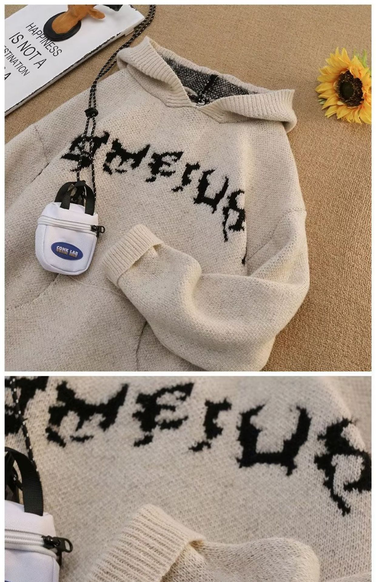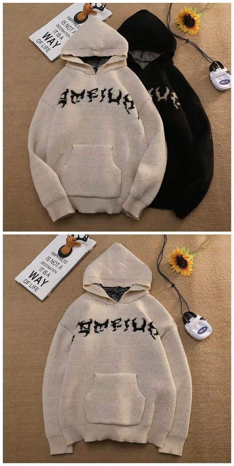 미국 게으른 후드 스웨터 남자 스웨터 하이 스트리트 스켈레톤 디자인 스웨터 느슨한 캐주얼 패션 머리카락의 세대