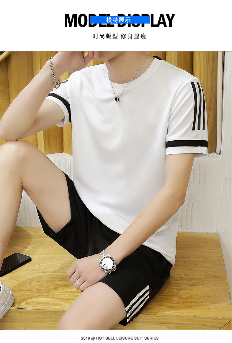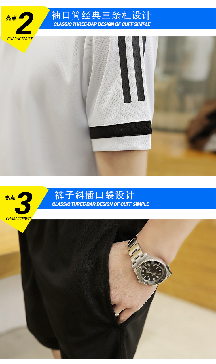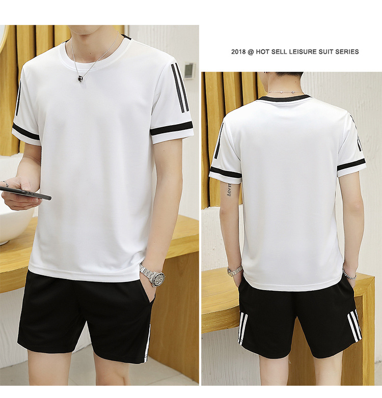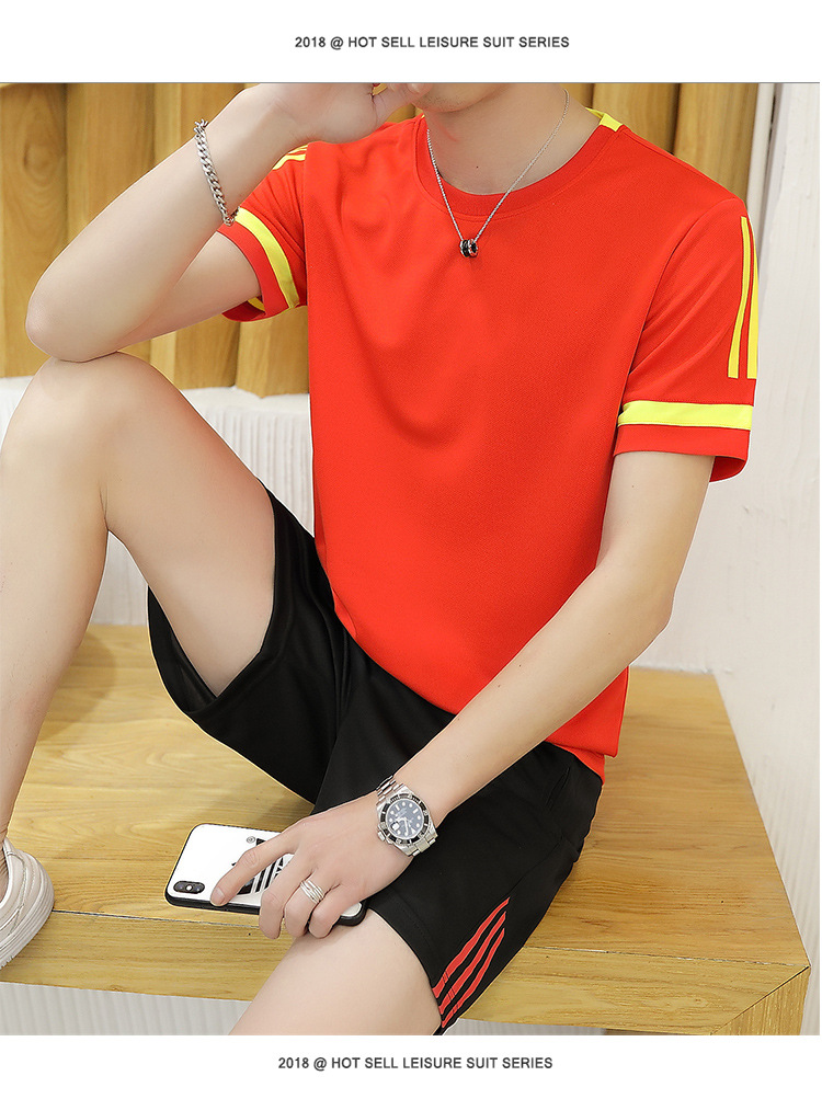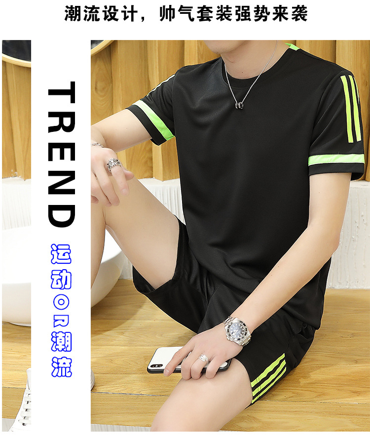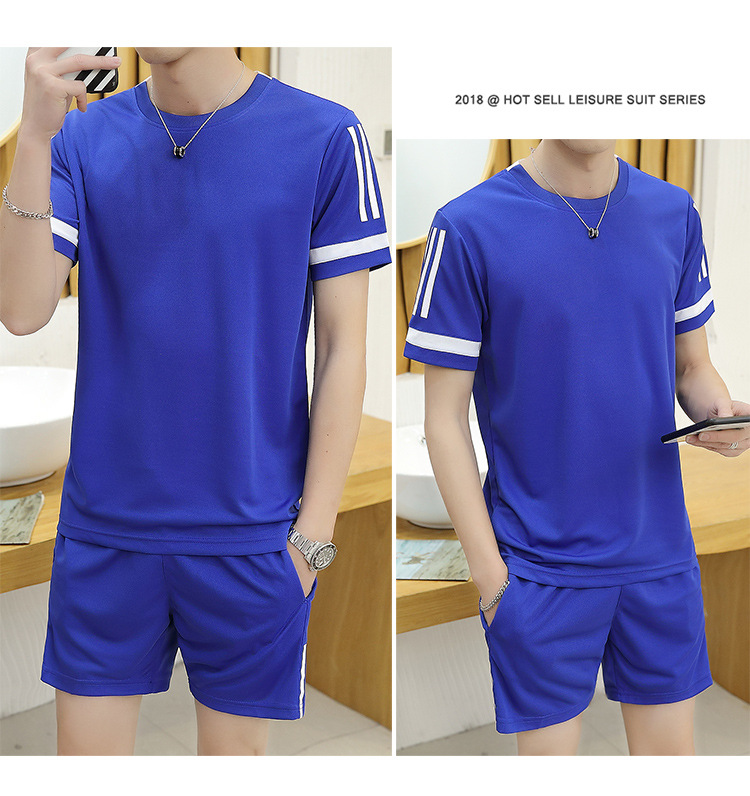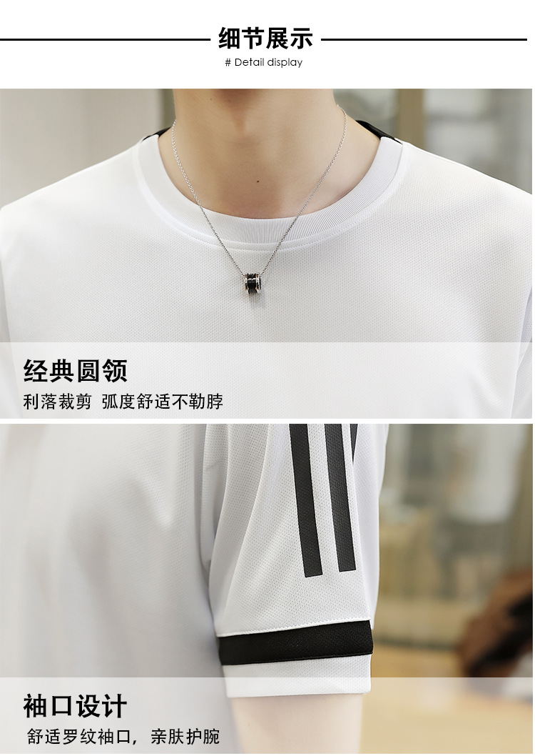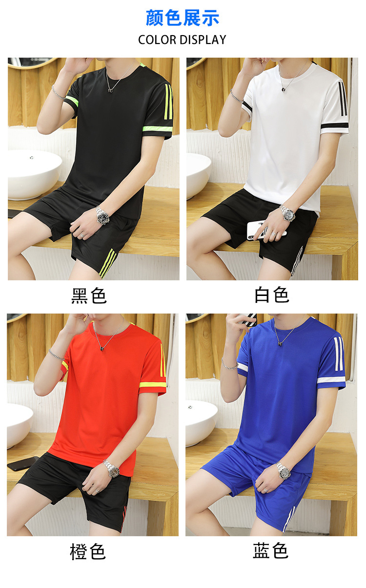 6308 스포츠 세트 남자 여름 달리기 빠른 건조 옷 반팔 티셔츠 느슨한 아이스 실크 훈련 옷