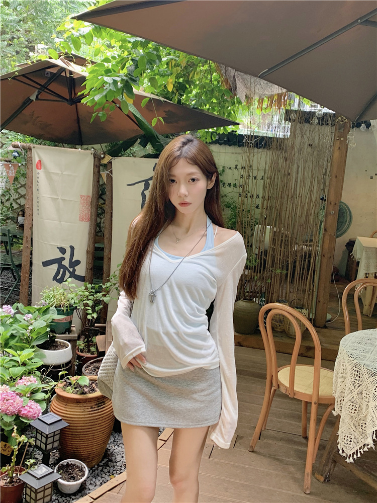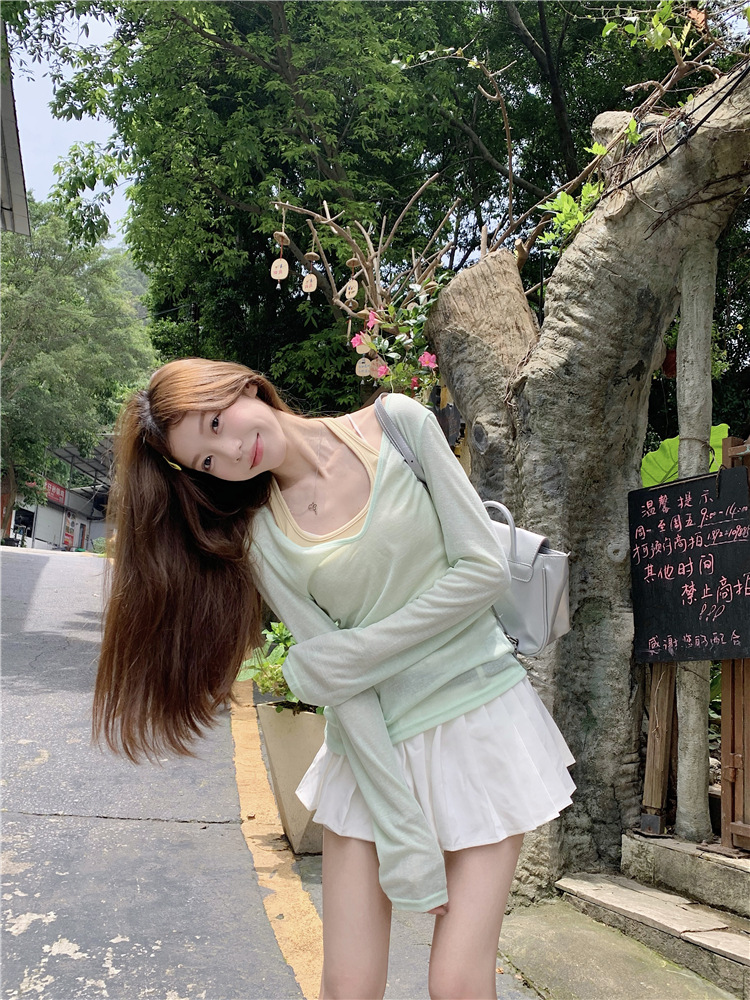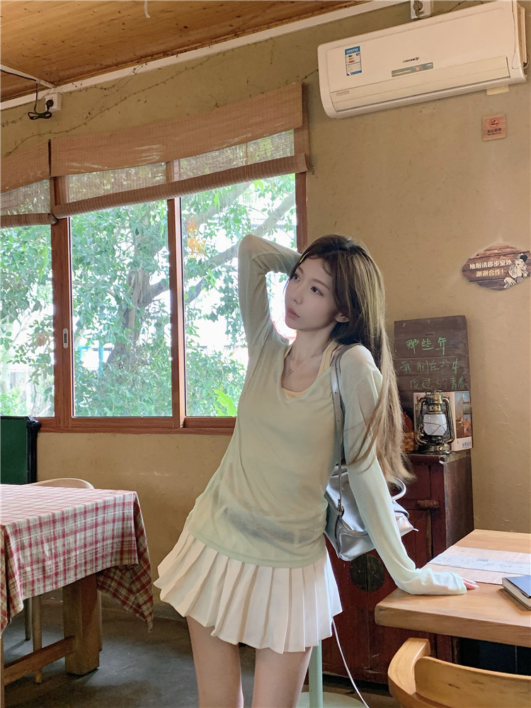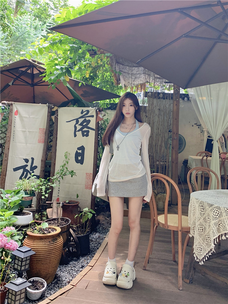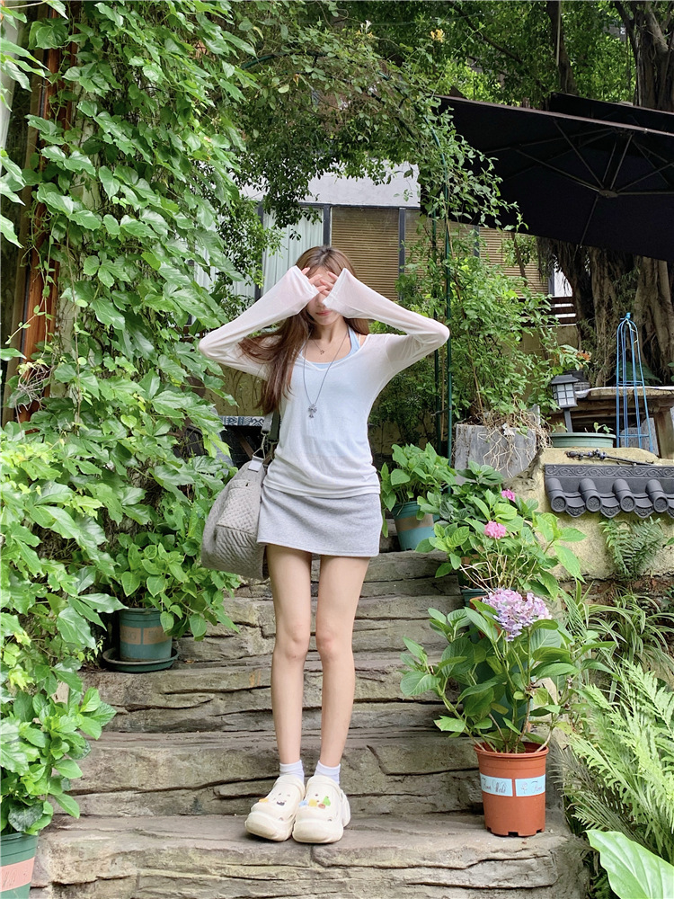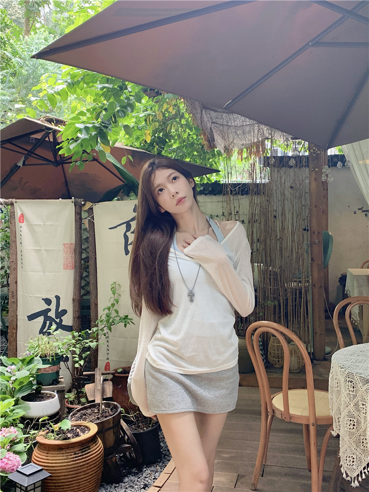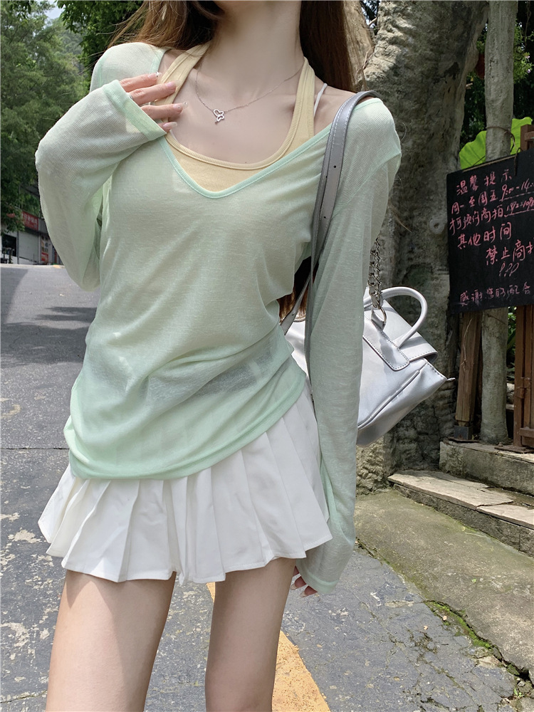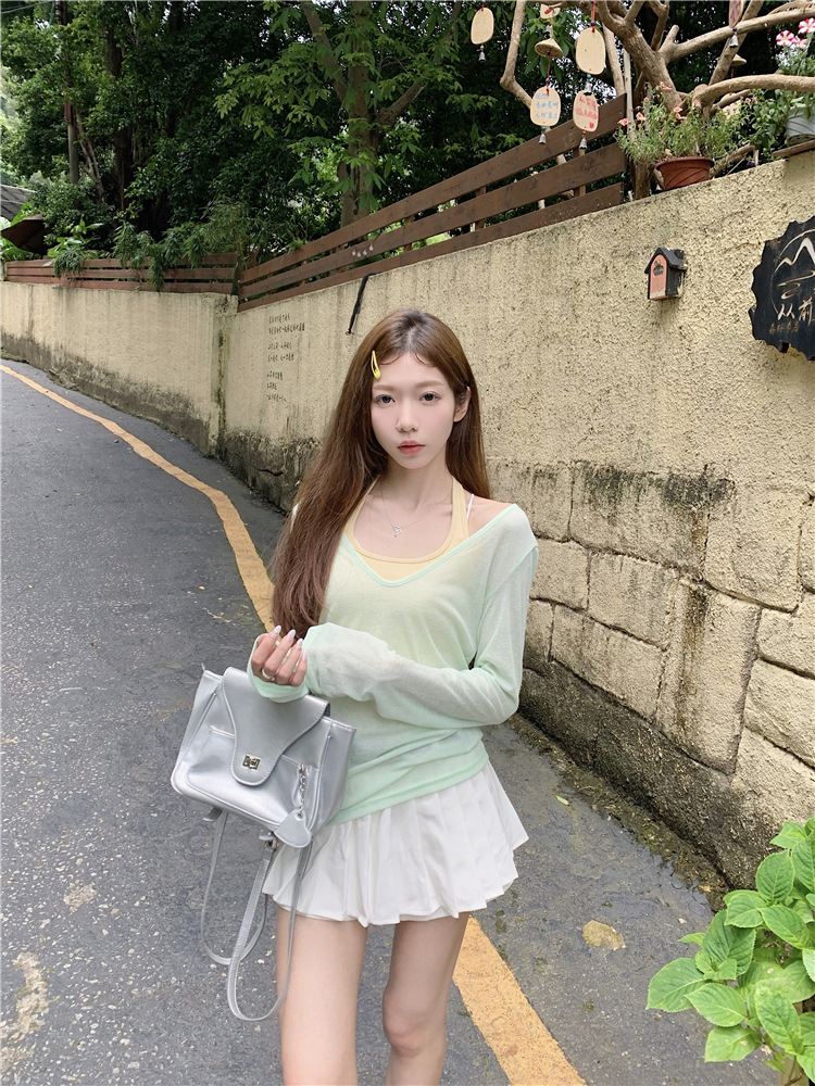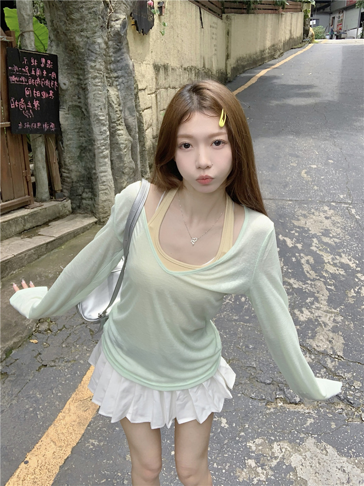 [셀프 세트 공장 오리지널 패브릭] 쌓인 자외선 차단제 블라우스 티셔츠 투피스 순수 백리스 넥 조끼