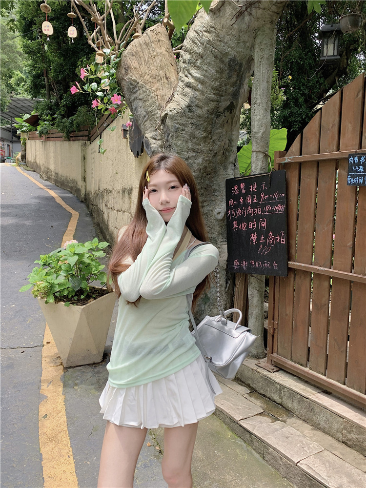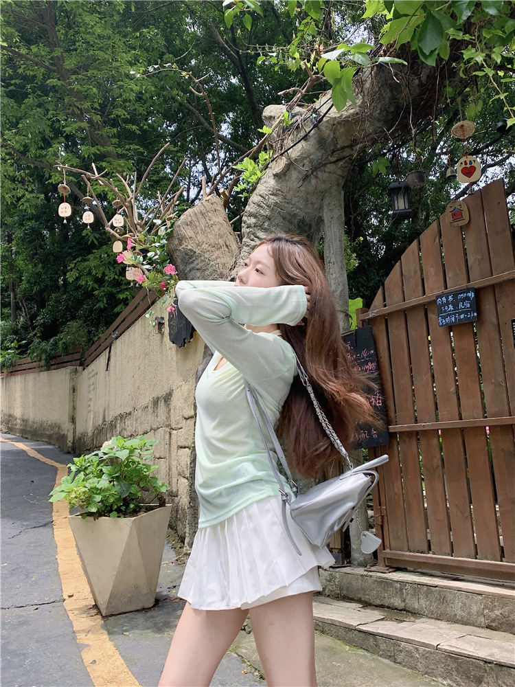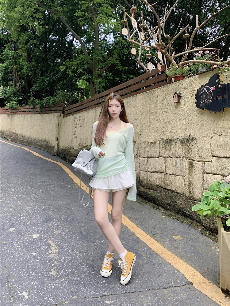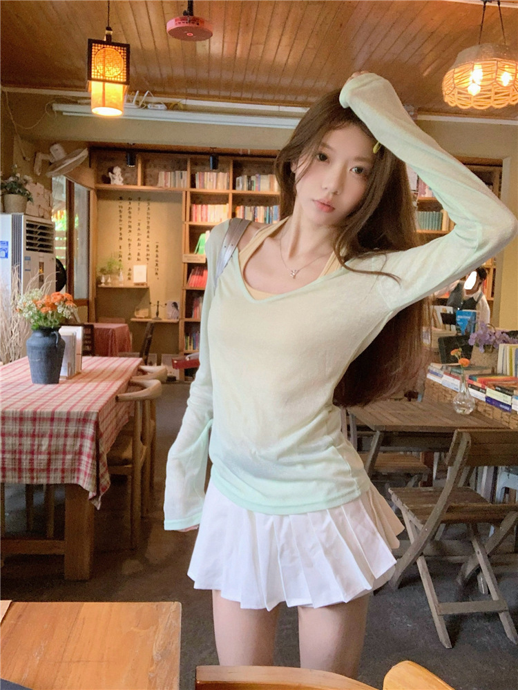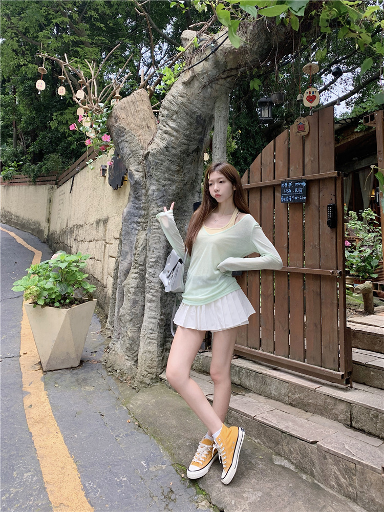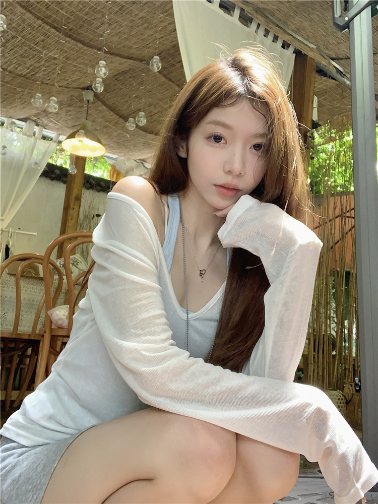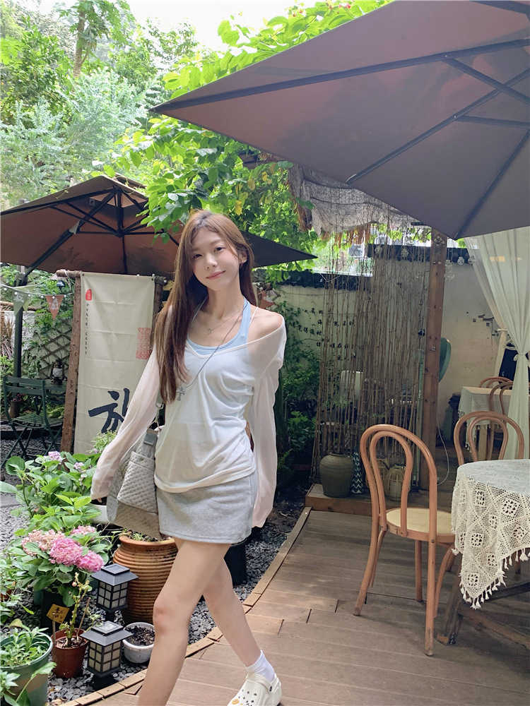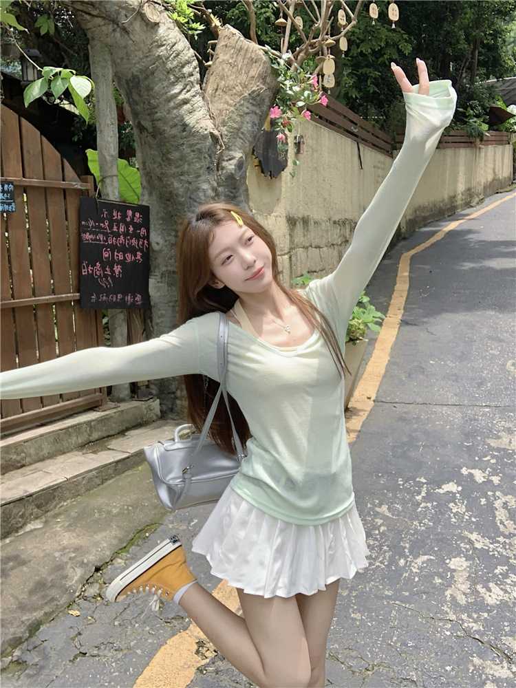 [셀프 세트 공장 오리지널 패브릭] 쌓인 자외선 차단제 블라우스 티셔츠 투피스 순수 백리스 넥 조끼