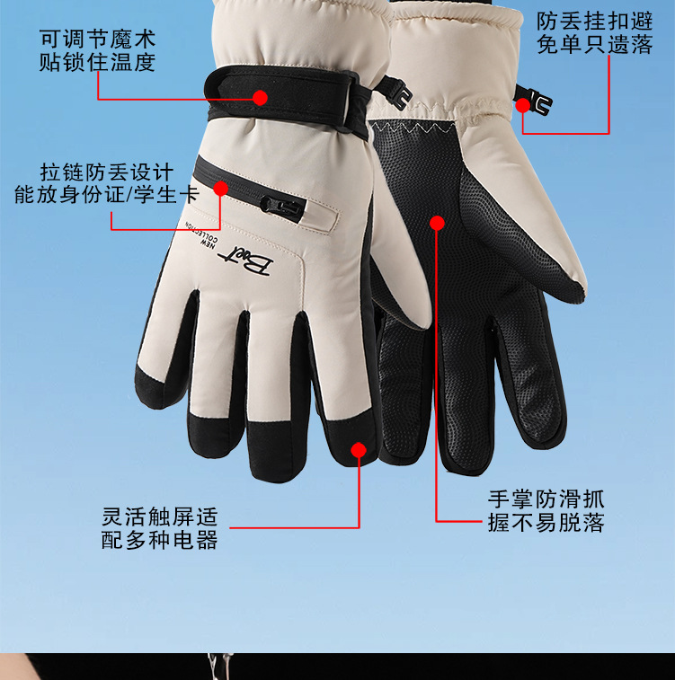 스키 장갑 여성의 겨울 따뜻한 터치 스크린 방화 눈 놀이 방수 기모 두꺼운 야외 승마 장갑 남성용