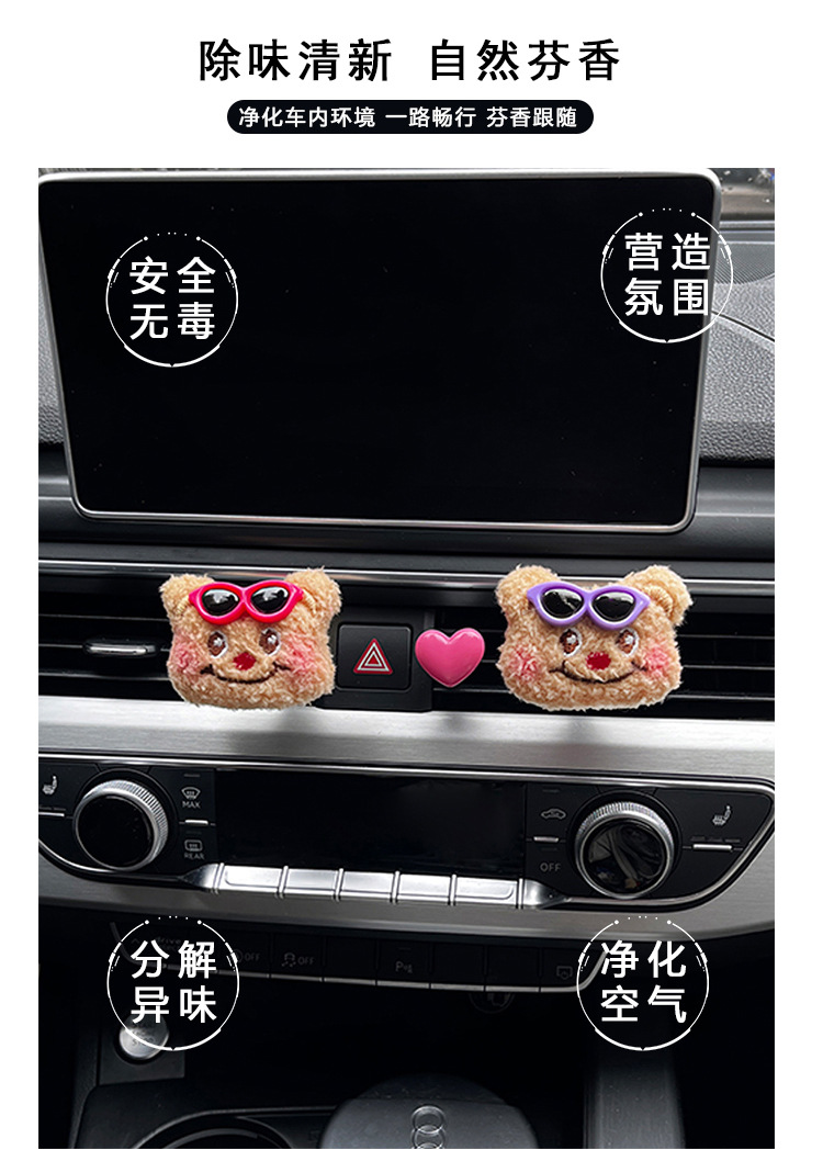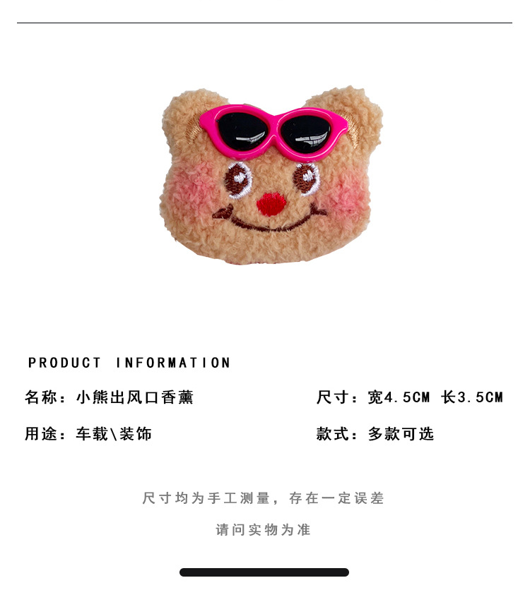 자동차 아로마 테라피 향수 에어컨 에어 아울렛 장식 봉제 버터 곰 귀여운 선글라스 자동차 인테리어 액세서리 장식품